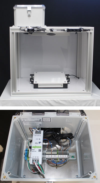 High-speed traceability solution for a food and beverage customer, integrating a Cognex 2D barcode reader and Allen-Bradley controls into an enclosure to read 100+ codes per minute.